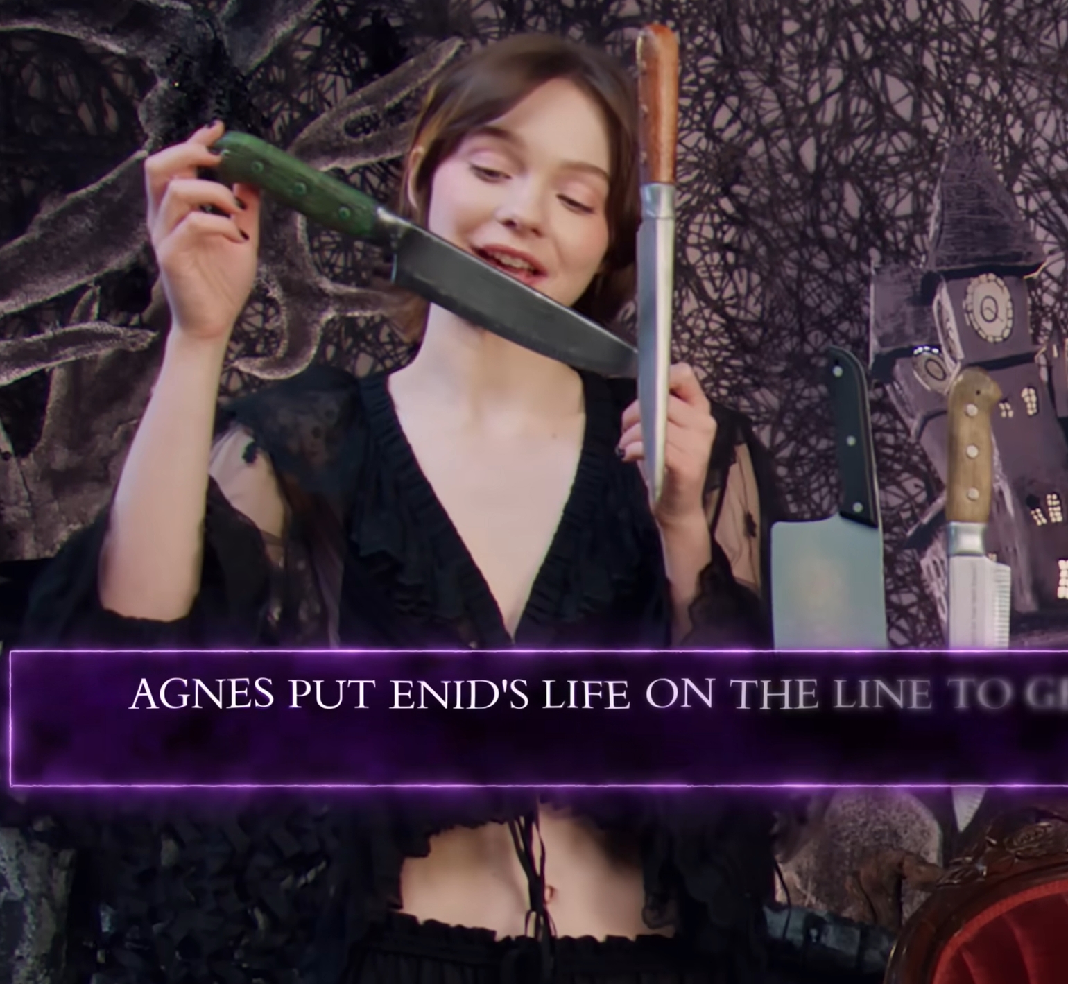 Не показано чтобы Агнес училась и хоть как-то существовала в Неверморе без Венсдей. Это дочь этой рыжухи с пик1 которой в лаборатории сделали супер способности. Поэтому она всегда в инвизе, она просто спиздила форму неверморскую и сталкерит Венсдей. В конце она ударит нож в псину, но Энидочка героически спасёт Венсдей, Венсдей извинится что не обращала на Энид внимание и сделала своей правой рукой Агнес, извинится перед Вещью и они станут бисексуальной парой, где их обоих будет развлекать Вещь.