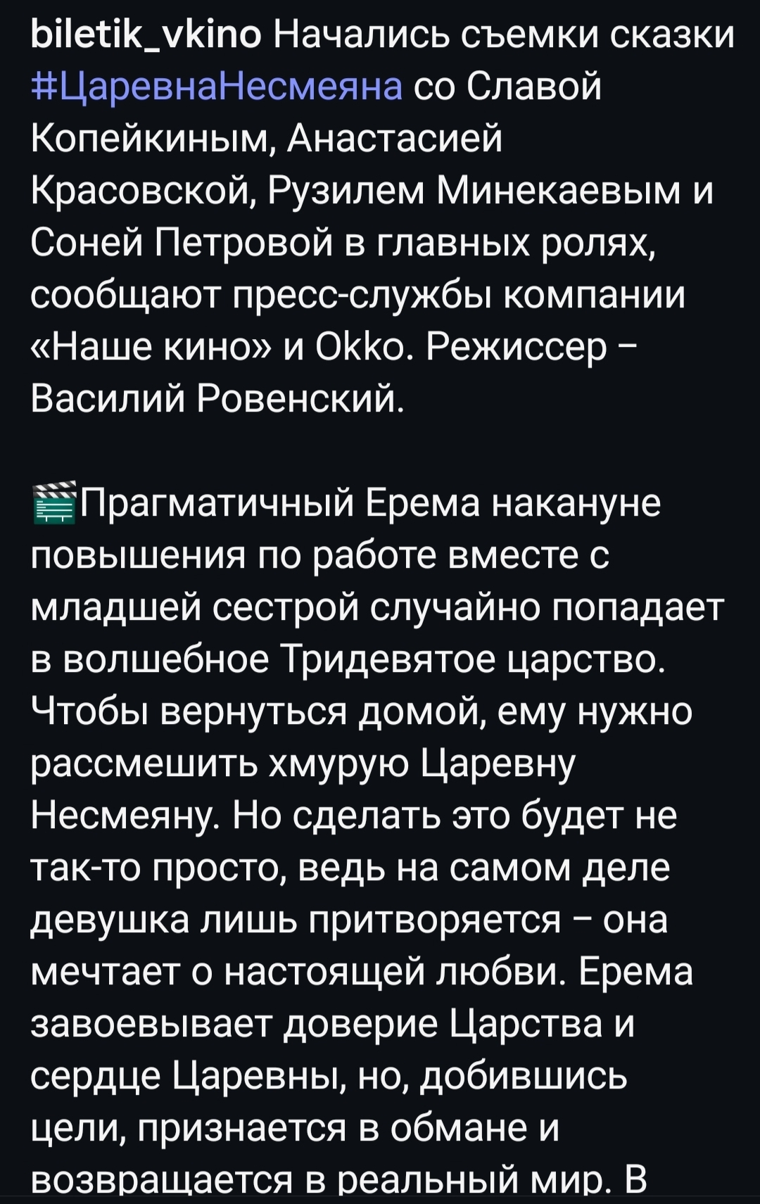 В главных ролях в сказочном блокбастере 🟦 “Царевна Несмеяна”.