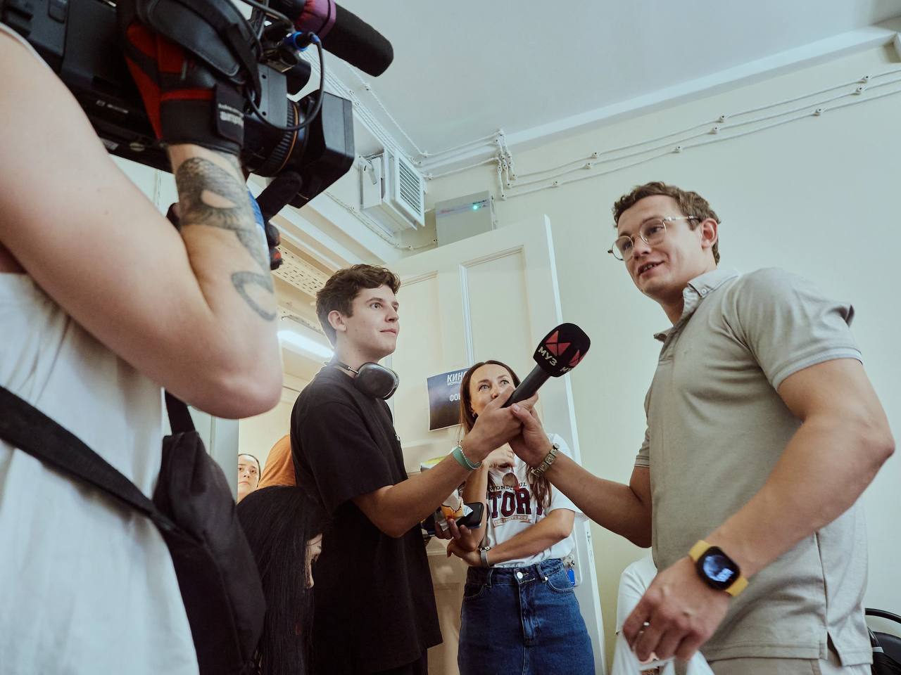 Жора Крыжовников на съемках сериала Шоураннер и режиссер «Москва слезам не верит. Все только начинается» — Жора Крыжовников, постановщик дилогии «Горько!», караоке-фильма «Самый лучший день», а также сериалов «Слово пацана. Кровь на асфальте» и «Звоните ДиКаприо!». Компанию ему составила жена и давняя творческая партнерша Ольга Долматовская. Ранее она работала как продюсер над телехитами «Физрук» и «Ольга», а также на фильме «Лед 2». Сценарий Крыжовников написал совместно с Алиной Тяжловой, Аксиньей Борисовой, а также с Евгенией Хрипковой и Юлией Гулян — сценаристками «Между нами химия».
