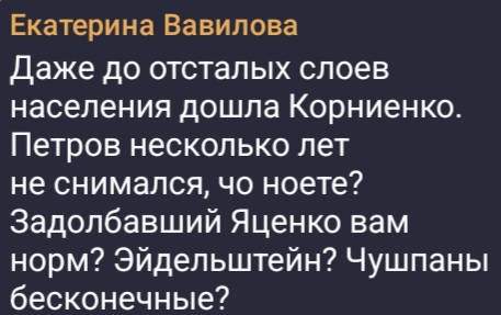 >>24980219 Если бы минетачи читали, то было бы заметней наверно? Тузик не подает признаков жизни (всм что читает его), у Леона хоть и было такое одно время, но потом перестало, возможно бросил читать из-за говноедв иуды (даже мне порой из-за него сидеть неохота, а уж спшникам и подавно будет), насчёт кала тем более бред, у него нет стоьбуо времени, даже если он быдет читать с большим опозданием по 1 посту в день, вы видели его занятость? Он посрать наверянка не успевает)) А с чего вдруг такие выводы пошли на ровном месте? Будь тут меньше спама, они бы чаще читали, если бы знали о треде, а то пока продерешься к сути сквозь тонны хлама... >итд А кто еще то? Другие тоже вряд ли... В первый год были совпадения и подозрения на узбека, но прошлой осенью или летом она будто перестала попадать в тему, а Леон ну мб с начала этого года видимо перестал, пушто я еще осенью и зимой помню, как он палился некоторыми вещами, типа поднимал в постах все темы, которые мы тут поднимали о прыщах и про губы (причем неверно понял пост и этим себя выдал), а потом он гораздо реже стал с января постить и вот за эьо время пока ни разу не попал с проебом