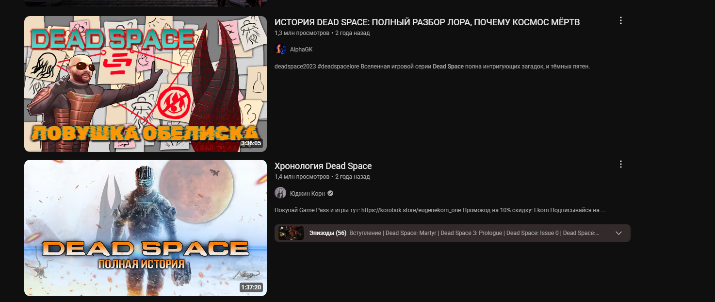 Много ли видосов с такими просмотрами по евил визину? Дай бог три штуки нашкребется с парой сотней тысячей. Все такие дед спейс более глобальная, проработанная и загадочная, раз столько людей интересуется созданием серии, лором и теориями.