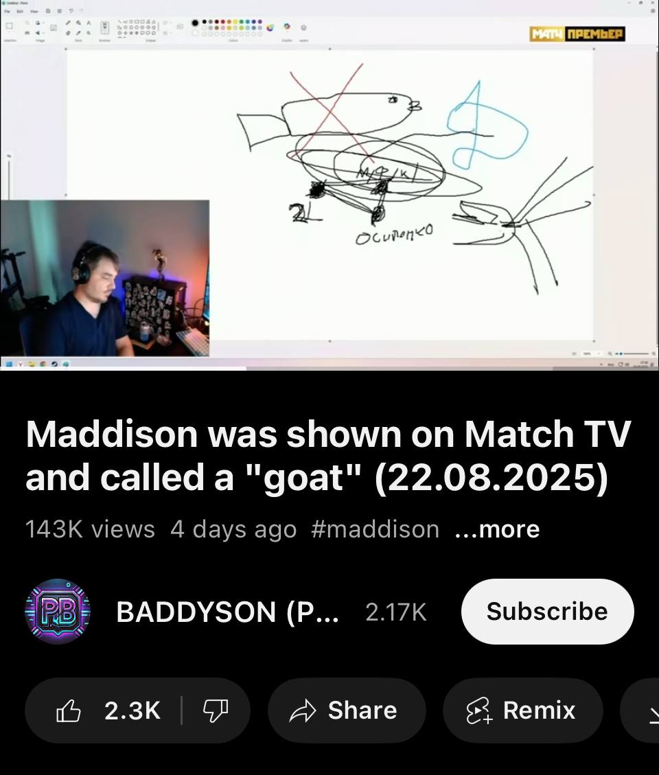 >>25078207 >>25077230 Мне кажется, это я частично виноват, что на спортс.ру (и на кибере) каждый "пук" Мэда освещают. Этим я начинал заниматься еще в начале 10-ых (например, его тег именно я создал), а в 15-м году, когда он уже активно стримил, стал у него модератором. Вот уже более 10 лет "модерирую". Ну а хоть к спортсу уже давно не имею отношения, там Мэд лишь всё популярнее становится с каждым годом - и обсуждают его больше даже не в новостях с его участием (потому что там редирект на кибер идет), а в новостях про Джеймса Мэддисона.