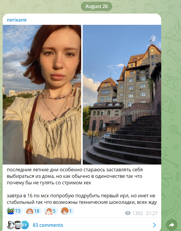 >>25078223 Ее очевидно ебут. Губы делала для ебыря. Хата с которой съехала - хата ебыря. Арендовали студию для стримов для отвода глаз. Все рассказы про то как с мамой недели две тусила, пока отек спадал, меняешь "мамой" на "ебырем" Кизер не инвалид. Просто показал коляску и все повелись. Там гигачад альфач. Ща кончит ей опять в пизду и отпустит ирльчик подрубать