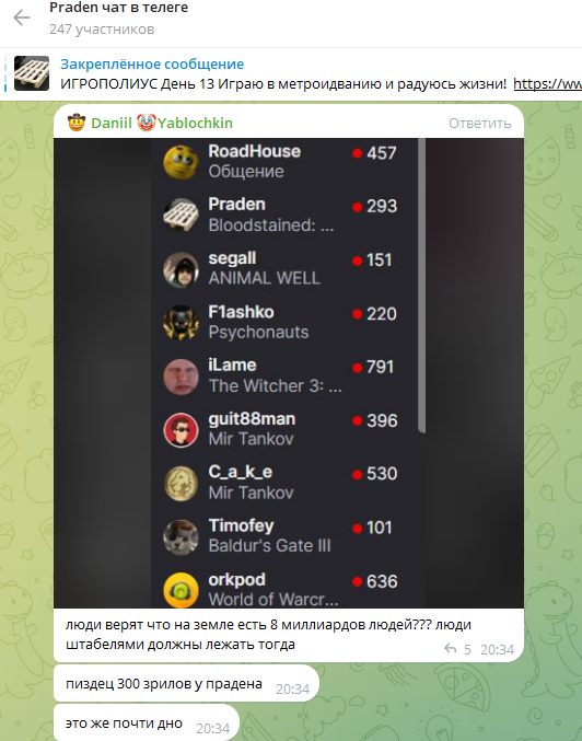 >>25083231 Действительно, как может у чела в 7 утра подрубки не быть 2000 зрителей. Вон Оляшу стабильно 1000 шейхов из Дубая смотрит в любое время, а в чате не пишут ибо языка не знают.