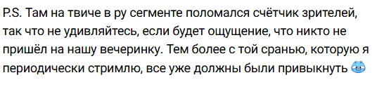 Так, относительно ситуации на твече со зрителями. Я вчера записал две голоса ухи, но ситуация не была понятна окончательно. Ну, просто это как-то быстро произошло и вполне мог бы быть баг.