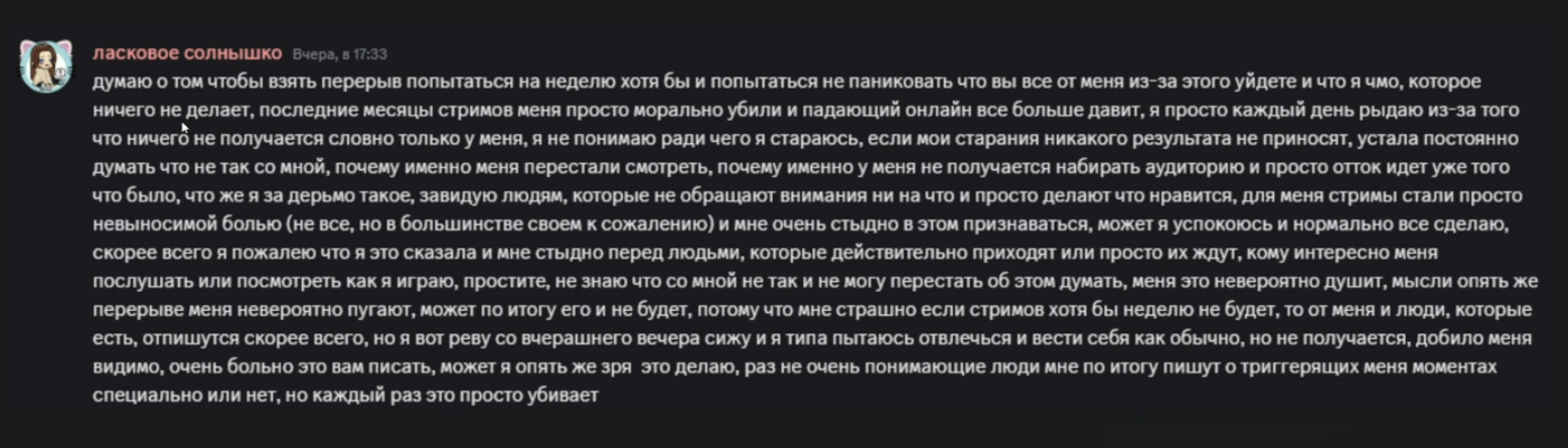 А про подсосов. Да их никто нахуй и не смотрел никогда. Лично я на твиче максимум мэдди смотрю и многие так. Тредовские человек 200 смотрят подсосов, но не больше. Мэдди вполне смотрит заслуженные тыщи 2 человек. Остальных стримеров тоже никто нахуй не смотрит также 200 человек мб. Я поверю в высокий онлайн только у ивана золо какого-нибудь и его компашки зумерской, потому что их дети смотрят, но они и не донатят почти