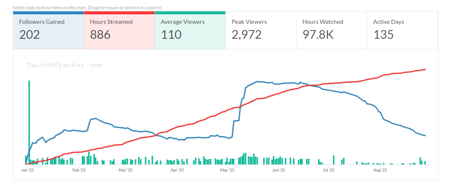 Каждый стрим заходят новенькие, видят маленькие цифры онлайна и отшучиваются, рофлят или просто в полном недоумении почему еще неделю назад был онлайн под 1000 а сейчас 200