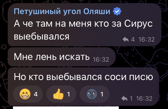 Сук, в голос с этого. Как хорошо, что Оляша не такая кринжовая мямля как Зануда и прямо во всеуслышание послала шиза нахуй лечиться и обрести жизнь, пока он ей свои гроши с пособия по инвалидности засылал. Каждой публичной персоне, до кого этот блаженный вниманиеблядь дотянется, следует поступить точно так же.