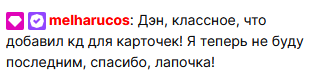 Тут обращение: И так получилось, что у тебя было это кд в моменте и ты на нем сделал акцент больший, чем оно есть на самом деле. Плюс ты посчитал, что это против тебя какой то нерф, хотя это не так. Нерф затронул всех, и у многих роллов карт много. Само собой у тебя карт по 6 ролится в среднем каждый ход, что больше всех. Но у других могут ролится 4-5 карт, например. Разрыв в донатах огромный, но в картах не такой большой, тк донат-голы растут в геометрической прогрессии, тоже для баланса между участниками.