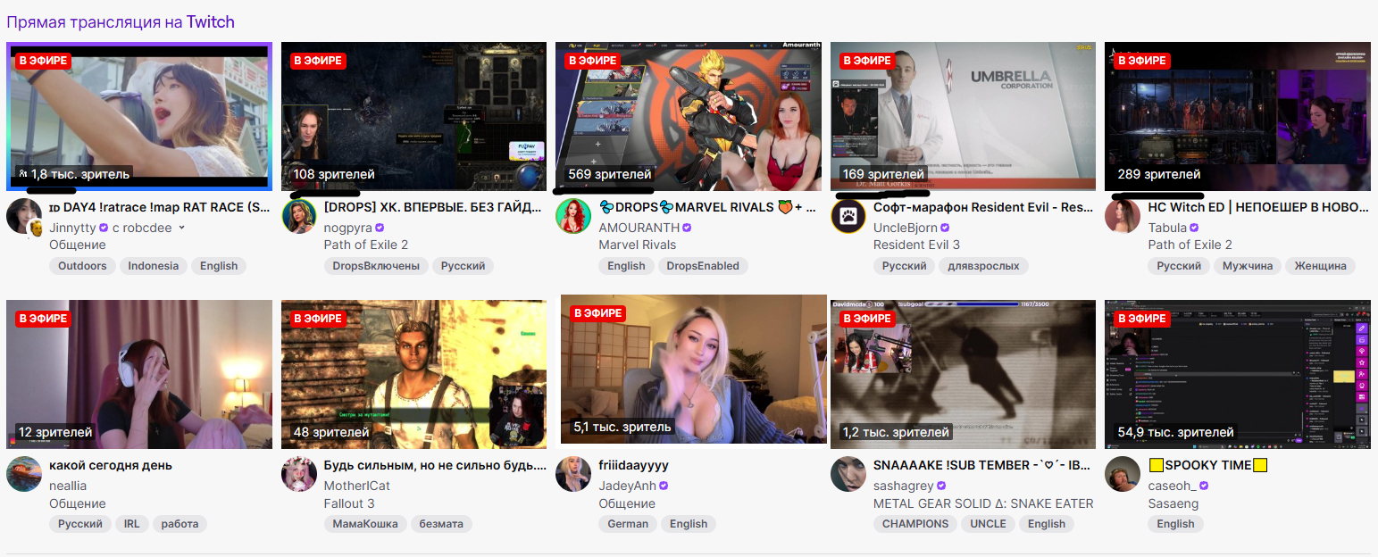 кто-то перетаскивает с тик-токов, других соцсетей, в таких случаях стримы довольно быстро набирают зрилов, но когда чел просто в вакууме на твиче подрубает, какой бы он пиздатый не был ему практически нереально пробиться, потому что сверху уже всё занято, только если чудо реки твича кому-то подсунут или ты будешь у других стримеров вниманиеблядствовать и на тебя внимание обратят или даже зарейдят