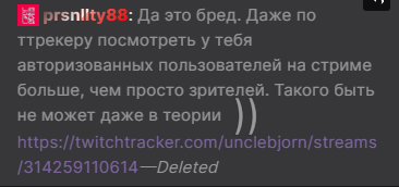 Ну вот этот хуй точно х2 крутил себе зрилов, ща норм стало. Про авторизованных зрилов это бред, следил за одной стримершой из нижнего инета, у неё онлайн был около 15-30 зрилов, потом как теневой появился стало стабильно в 2-3 раза больше. По списку зрителей было понятно что у неё боты, т.к. дохуя было акков созданных в одну дату и рандом никами. Чат конечно же почти мертвый