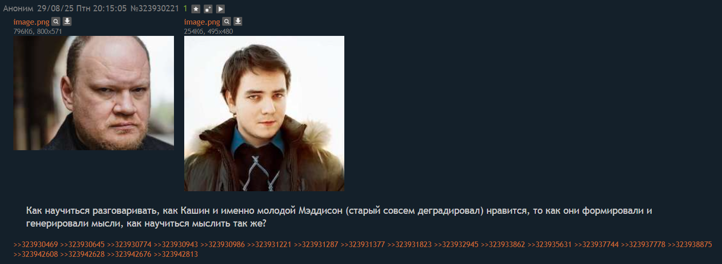 >>25099009 Ну ладно аудитория может быть разная и не слишком активная, но 1 к это минимум треть активности. А 300 человек в чате практически всегда бегущий. У нас зайдёшь на какого нить Дерзко то один мубот или модеры спамят. А самый главный показатель, как они всегда стыдятся и пытаются перевести в шутку тему про ботов