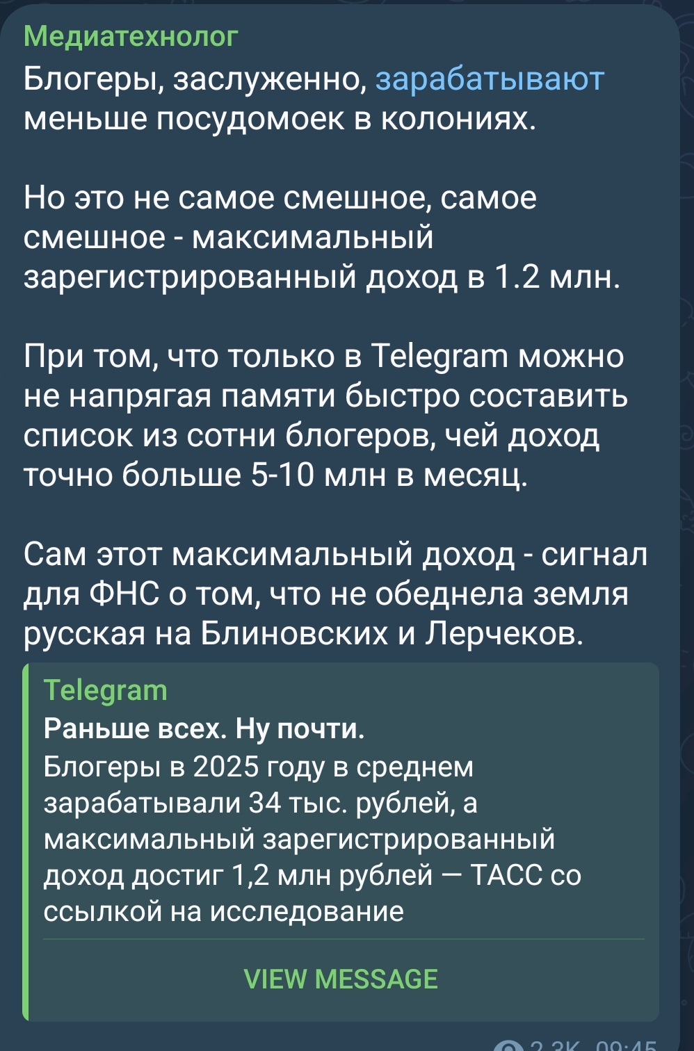 >>25099309 не знаю, не видно что-то, что стримаки с тачками по несколько дестяков миллионов, недвижимостью в разных странах и на Родине за десятки миллионов как-то сильно борются, разве что чтобы не начать крыть хуями крестьян вокруг них