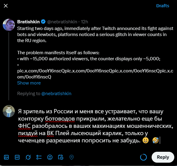 какой лично вам интерес от скрутки онлайна у ру стримеров? вы же 0 профитов с этого лутаете, вот и забейте хуй