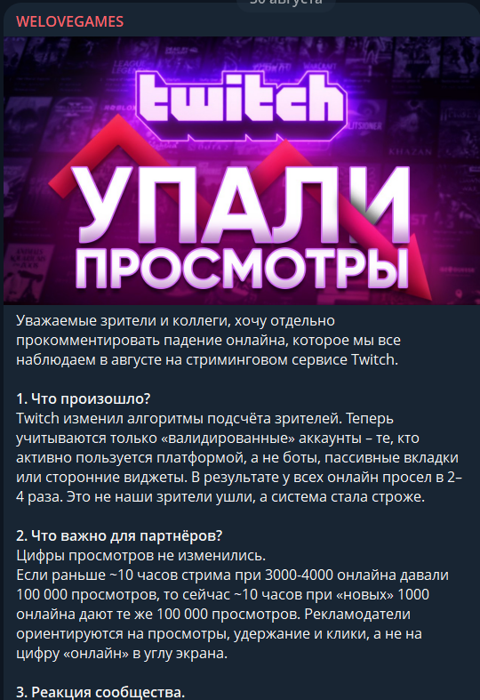я бы на месте стримеров больше внимания обращал на число просмотров водов своих после стрима, когда стата подсасывается