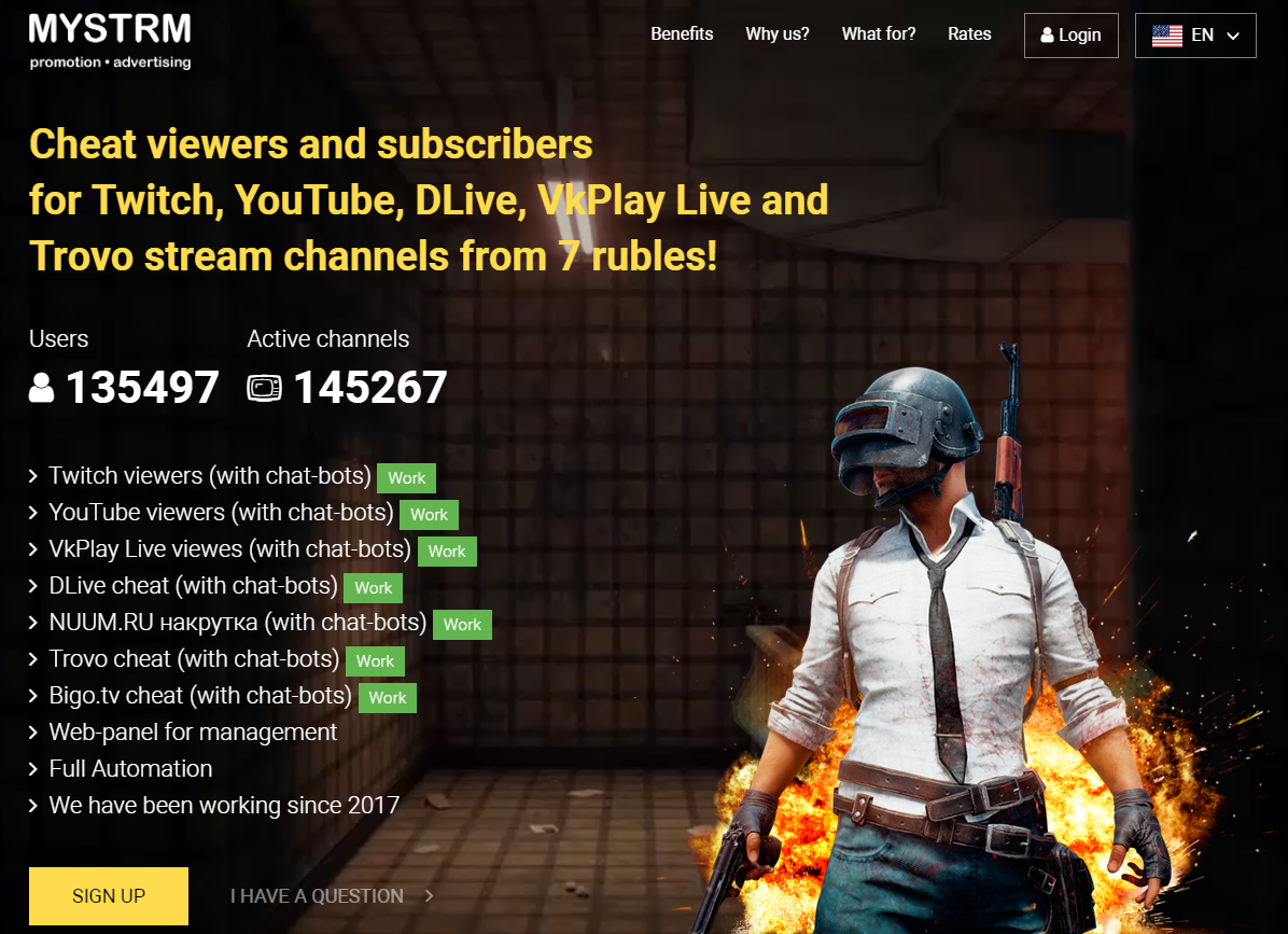 так накрутка прям ща работает, гляньте на этого вот долбоеба с мед фм, там чат мертвый наху, зрилов должно быть меньше, чем у зедапа, а тут полсотни практически
