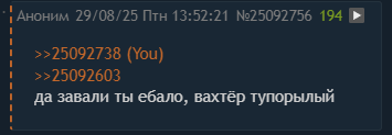 >хуй пойми кто Во-вторых, здесь в своем скромном итт, они высираются лишь когда их выпиздят из калсоса, отдельные черти буквально сперва высрут свой скрин там, а уже потом постят его же сюда
