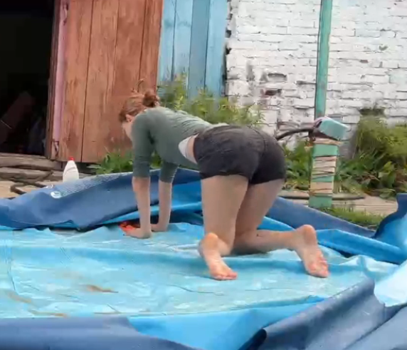 два часа при поддержке матери не может почистить бассейн, взять широкую щетку, моющее средство и помыть как пол лучше ж гонять по кругу грязные лужи, щеголять двумя сносными ракурсами детской жопы, оправдывая крученый онлайн