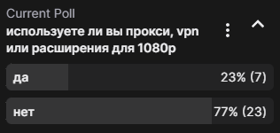 Еле как набралось 10% от "смотрящих" в опросе и это после скрутки ботов. То есть на прошлых онлайнах в 600-700 всего 30 проголосовавших было, очевидная подкрутка лол