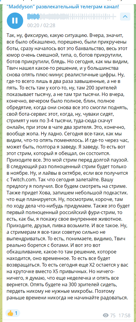 >>25109368 У илюхи жопича даже без стрима больше активности