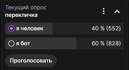 >>25110176 у ботоводов голосов больше онлайна было типа Крабика