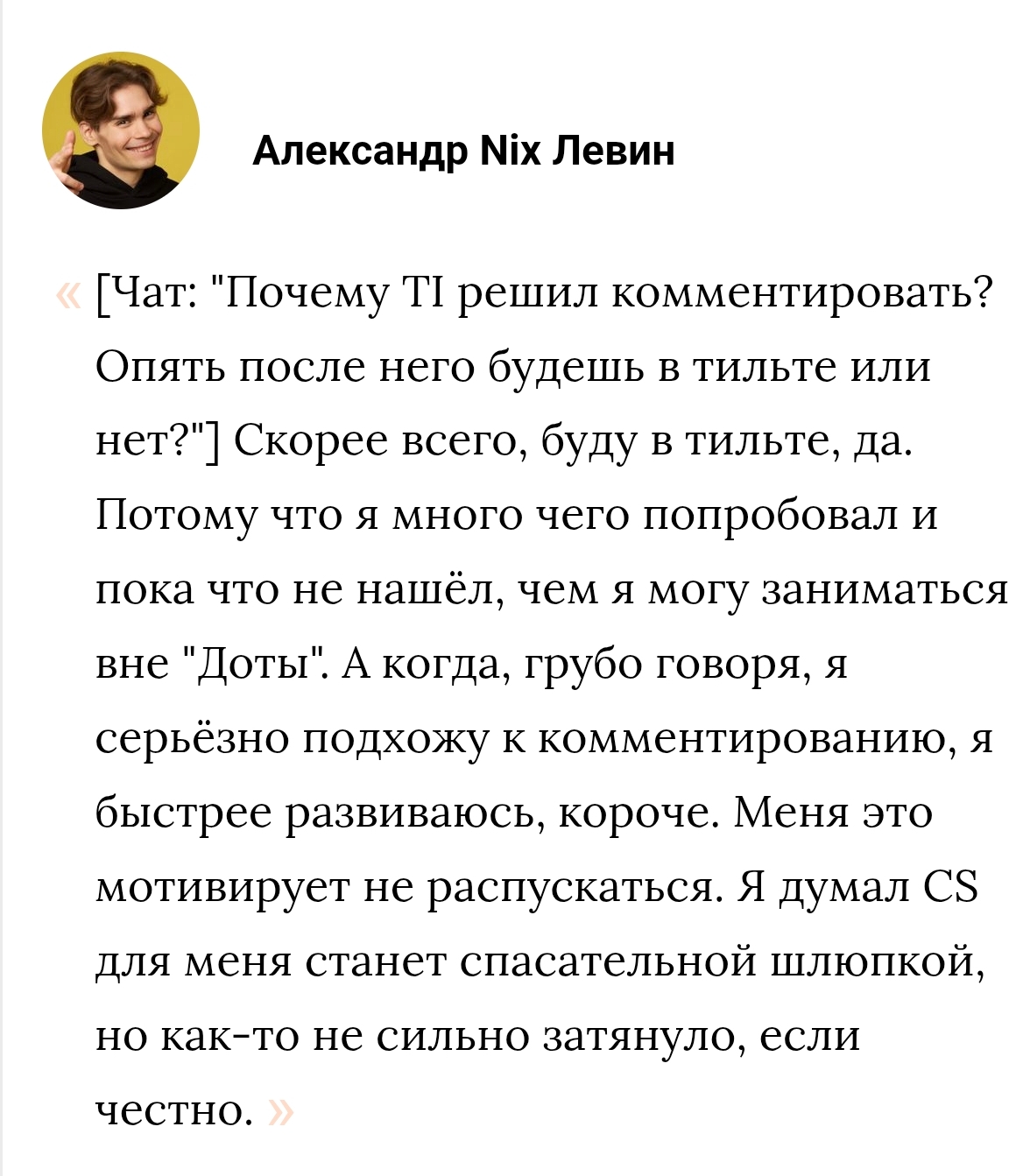 >>25110893 (OP) Никс вчера провел свой первый продажнич от Дианы и сразу же захотел вернутся в доту Задумайтесь