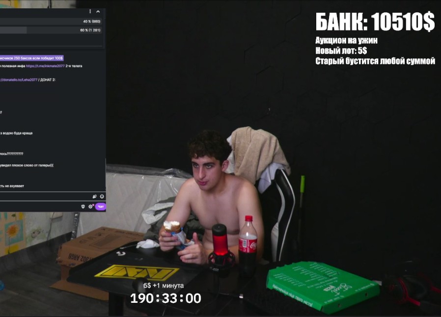 Если бан на твиче, то заканчиваем и это не поражение. Если кого-то придется госпитализировать то остальные достримят(главное чтобы один из нас оставался на острове). Сумма минуты будет меняться раз в сутки. Аукцион на еду 1 раз в сутки Аукцион на предмет 1 раз в сутки