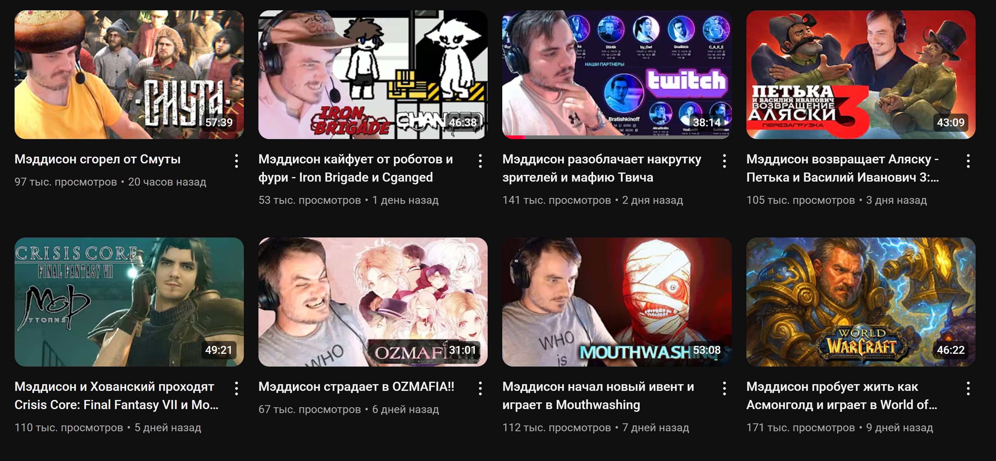 >>25124038 чмодье банит всех нарезчиков, можно сказать его канал хайлайтов аккумулирует просмотры вообще со всего ютуба у всех остальных десятки других каналов с видео, и люди выбирают то что им нравится смотреть