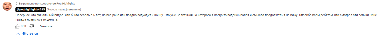 >>25128568 Увидел краем глаза, что тут какая-то драма с Юзей. Перестал смотреть его еще года 3 назад, когда чел начал все игры просто по фану хейтить. А теперь удивляется почему аудитория начала хейтить его, что посеешь, то и пожнешь