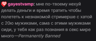 >>25125860 Не знаю, что там было на стриме, но выскажу своё мнение, чтобы немного разбавить тред хейтеров и хуесосов. Ничего базового в этом тейке нет, но и ничего предосудительного тоже. Человек сказал, что не хочет участвовать в какой-то хуйне, имеет право. Ну спизданула там что-то про галино сексуальное поведение, это, конечно, не ок. Ну и что? После всех Настиных высеров это достаточный повод для бана? Уж хоть за то, что она главсимп Галины и проводит всю жизнь у неё в чате можно было бы проявить к ней какое-то снисхождение. Могла бы хотя бы отхуесосить её как следует и забанить когда они совсем поругаются. А вот за такой пост банить это хуйня.