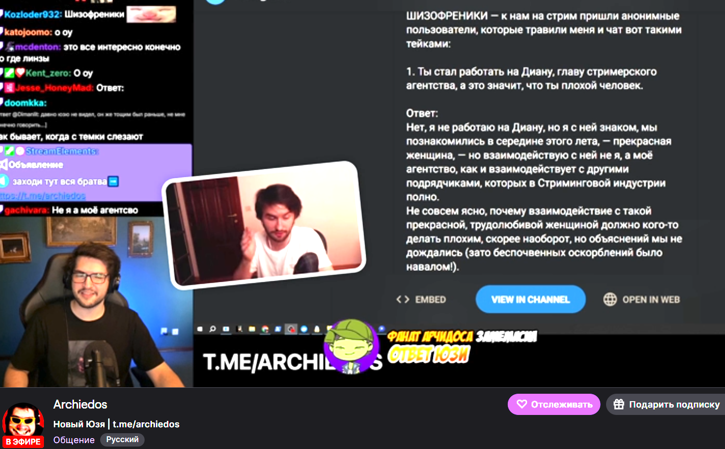 Ребята давайте по честному сделаем выводы, очень много зрителей и стримеров завидуют успеху и популярности Арчидоса, поэтому пытаются его выставить в плохом свете, сказать что он гниль, но он самый обычный парень который выбился с низов и достиг своей мечты не работать и лутать бабки, мы о таком только можем мечтать, и признаюсь даже у меня капелька зависти когда я думаю об этом возникает, а завить порождает злобу и гниль как раз то по отношению к Арчидосу, арчи просто пытается защитится от этих нападок