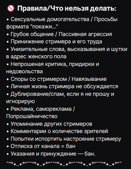 Я всегда любил прикалываться и зла никому не желал, хотя постоянно шизы говорят об обратном и мои же зрители в качестве юмора это подогревают, подыгрывая реально злым гандонам у которых цель лишь как-то мне помешать. Меня часто обвиняют что приколов и креатива стало меньше, порой моя душа тоже хочет чего-то такого, как раньше, угарного рэпа там или еще бреда какого-то, но когда я захожу на это поле, всегда возникают ебучие полицаи в донатах или в чате и начинают за любой прикол раздувать какой я гандон, тем самым уменьшая любое желание, что либо делать, мне всегда казалось, что зрители это не надзиратели, а это мои кореша и должны стоять за меня горой, да, это нормально когда меня подъебывают или шутят надо мной в кругу друзей, но перед внешним миром мы должны быть друг за друга, а вместо этого просто какие-то попытки подруинить или поднасрать. Это хуево и заебало.
