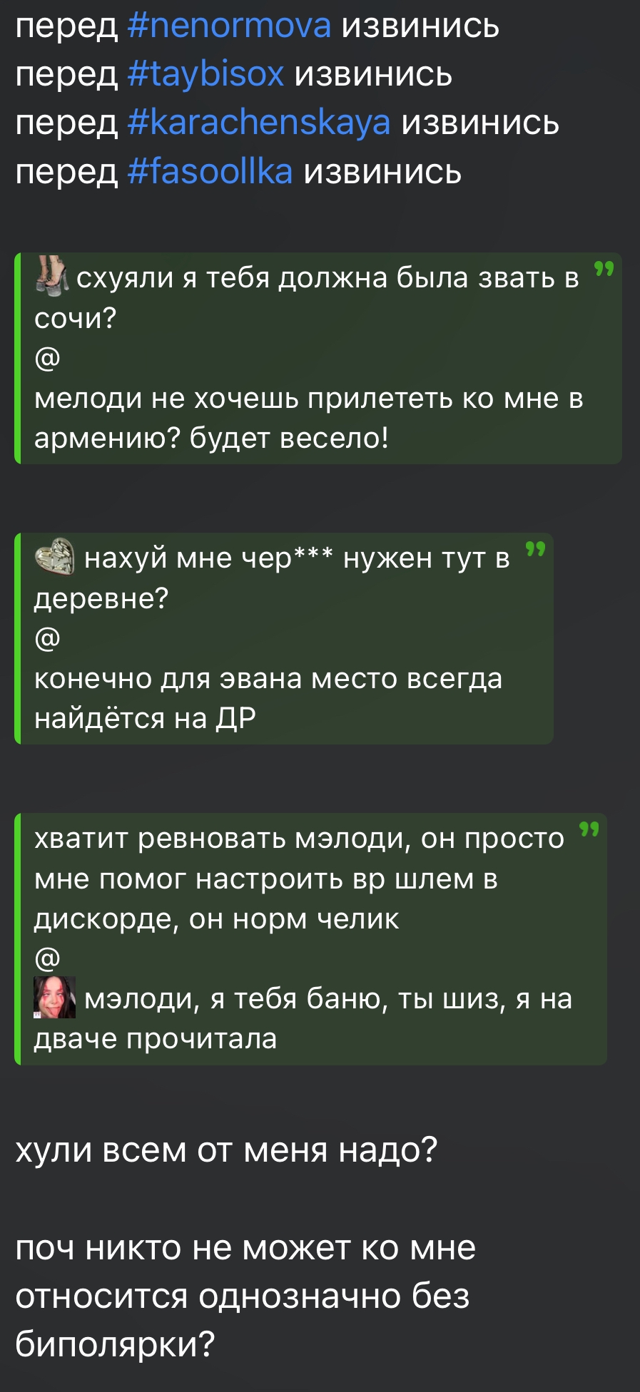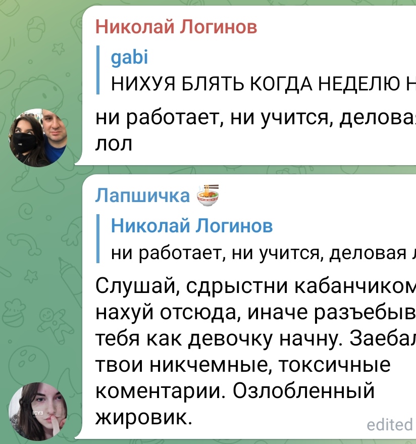 Давайте я вас по фактам рассужу: если написать кокисосу, приходит кокисосу; если написать чмарик, чмарик не приходит, но иногда тоже приходит кокисосу. Раскидал по-быстрому по фактам и пошел дальше в дрочильню к габи