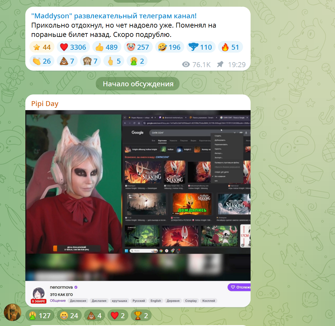 >>25166430 Я и сегала не смотрел дольше минуты... Вот Илюхин пиздёж иногда норм послушать, деда Балдежа, Сармата, педочурку орегонскую, жмиля (было когда он ещё не расфорсился). Ну и когда Мэд/Ласка проходят мои любимые игры можно глянуть на фоне. Всё остальное это максимально скучный однообразный кал для умственно-отсталых