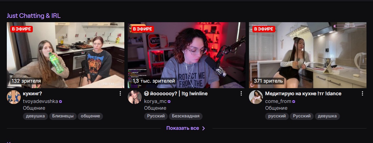 я бы понял проход в верхний твич к бустерам эвелонам, но он же пошёл к бьёрнам, бровянам, вудушам, кефирам, кармикам, гитманам, где наряжаются в клоунов, где заставляют кривляться и агушекал проходить без мата