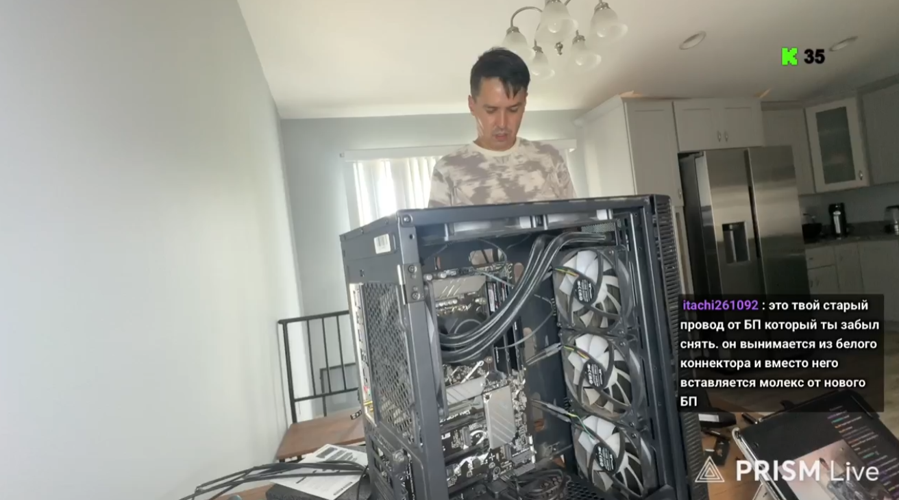 Первый стрим после поста Илюхи. Илья ему говорит - ты хотел спать на стриме, так ложись и спи. Нет, челик подорвался и стал донаты проверять, мем алертсы. Второй и последующие стримы - с горем пополам поиграл в Нью Вегас, начал Макс Пейна и просто видно что он никогда не играл в это. Максимум смотрел иногда. Третий момент - попытался заскринить себя и свалить оставив пикчу на экране, но это заметили.