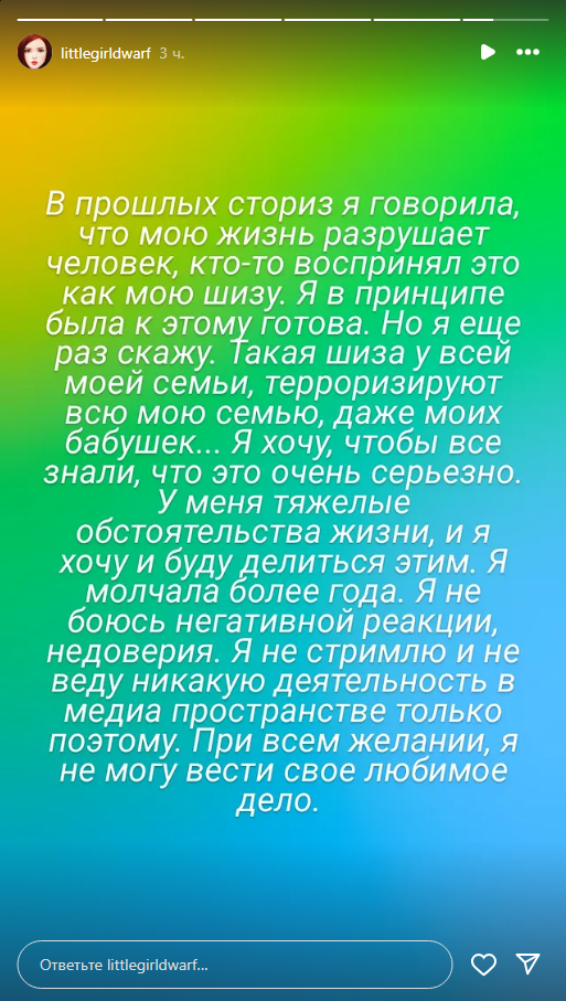 >>25171315 я знаю, короче каловуд съехал с катушек и репостил в дискорд как написывает ржавой, если вкратце то он хотел её трахнуть зная что у неё есть парень (патлач с вк), она по рофлу попустила базовудуса сказала чтоб писал когда отрастит волосы, короче этот шиз начал угрожать её семье и типа по рофлу вкидывал как переписывается со спортиками бати, кидая смутные адреса чтобы "проверить человечков)))"