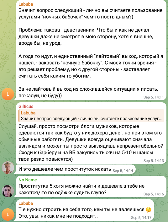 последний раз у меня секс был в 2019, обоюдный. буквально через неделю она уехала в другой город учиться и я ее больше не видел. отношения до этого момента длились месяца 3, секс регулярный. внешне она была на 7ку или даже на 8. единственное, мне на нее было абсолютно похуй, не было чувств к ней, потому что перед ней я расстался с другой девушкой, которую пиздец как сильно любил. точнее, она меня бросила. я никак не мог отойти от этого и поэтому решил быстро подцепить другую.
