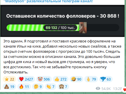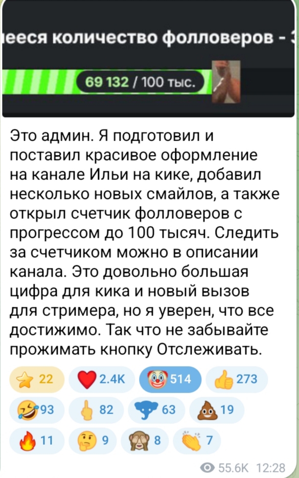 А что, медобратва? Что мы, илюху, что ли, подведем? Давайте ещё по аккаунту на кике создадим да фолоу оформим, и не по одному а по два и по три, где это видано что на Илюшеньку нашего всего 60к подписано?