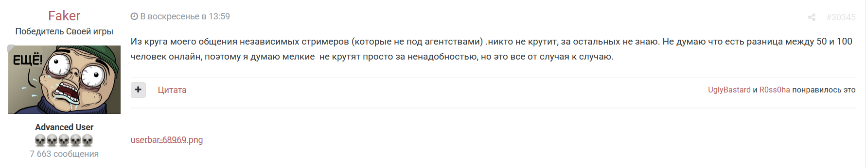 >>25173324 >чтобы соответстовать облику "верхнего" твича Не всего верхнего. В ЛОС у всяких Гаечек ботами создается такой же водопад пустого говна в чате. Речь больше о стримерах типа ВЛГ. У них постоянные коллабы через твич-функции объединения чатов и счетчика онлайна и типа один неуправляемый участник может таким спамом тупо рекламиться в чатах всех участников по сути