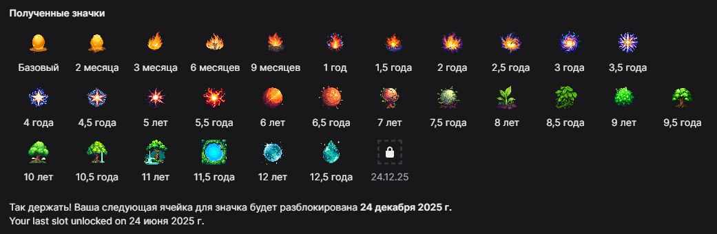 Вчера сидел после стрима и думал, как лучше всего отображать эти значки, когда твоему каналу так много лет?