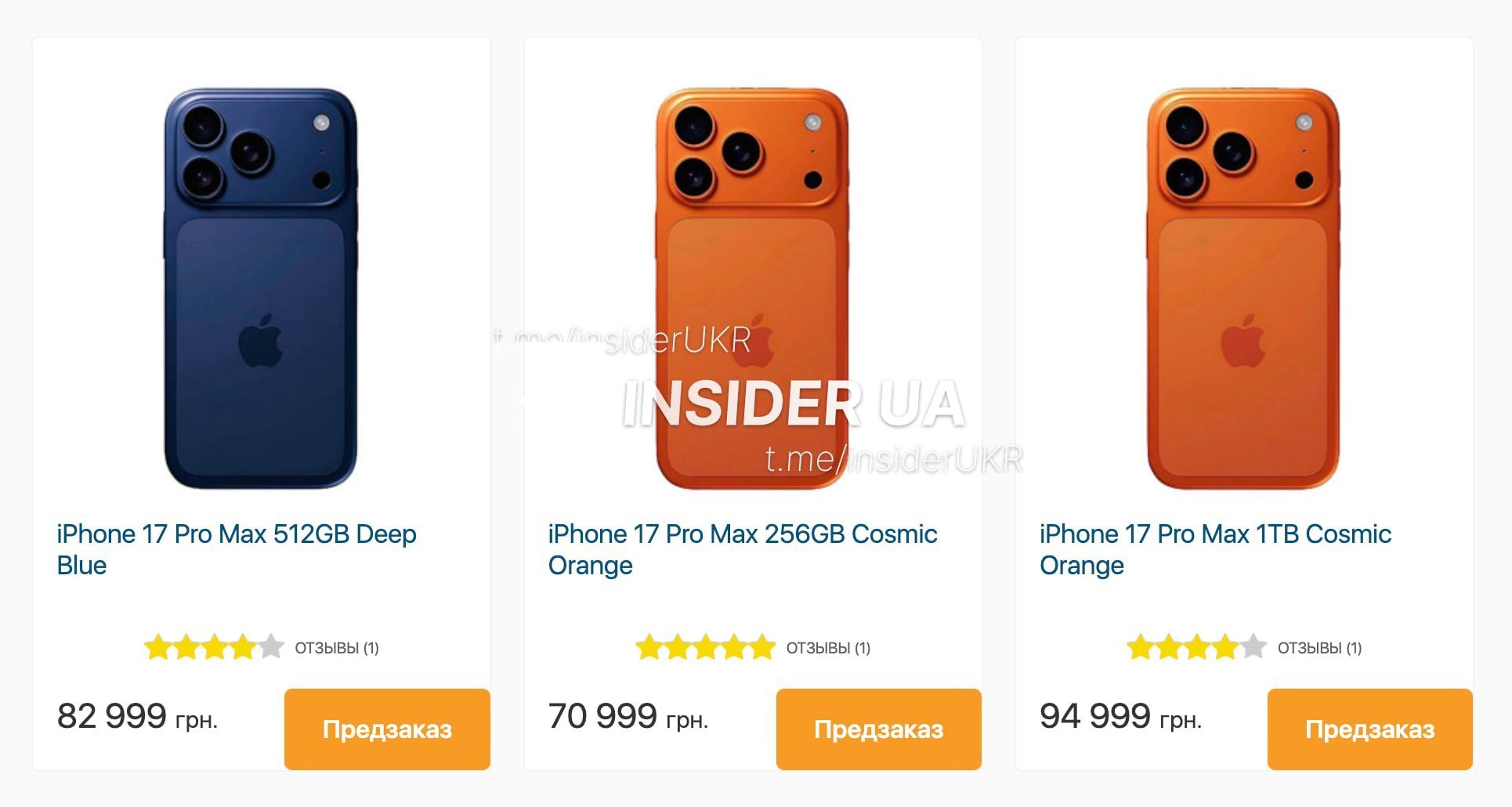 В украинских магазинах появились цены на новые iPhone ▪️Стоимость iPhone 17 Pro Max в Украине — от 71 000 до 83 000 гривен; ▪️iPhone 17 Pro —до 76 000 гривен; ▪️iPhone Air — до 71 000 гривен; ▪️iPhone 17 — от 47 000 до 59 000 гривен.