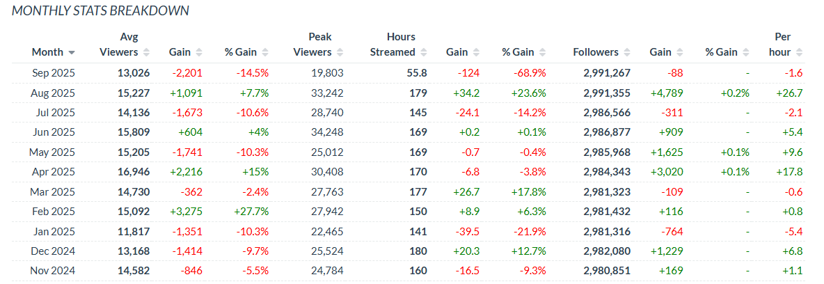 >>25177461 Топовый онлайн 30к средний 10к получается 40к + 5к залетух из тг которые стримы не смотрят остальные автоботы Все по чесноку реальные фолоуы