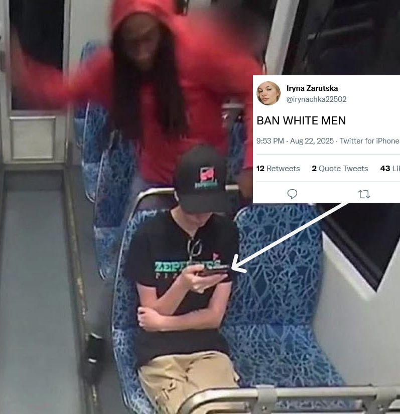 Ну тоже надо додуматься - повернуться к негру спиной. Ну сядь ты НАЗАД, чтобы обезопасить себя, чтобы у тебя был обзор и какая-то возможность ответных действий. Ну и носи с собой перцовый баллон, если ездишь на общественном транспорте.