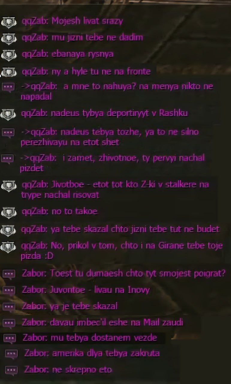 илюха зашел на 10 минут на американский сервер линейки ему сразу начали спамить в личку челы из клана с названием "UA" что ТЕБЕ ТУТ НЕ ПОИГРАТЬ и начали его убивать ПКшить он перезашел на другой сервер поновее, и там так же начали срать в личку и ПКшить доширачники х мены он вышел из нее, все