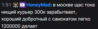 по пиздежу чмодья можно понять (и тут он не клоуничает) как выглядит представление о рф у типичного леброна сбежавшего в грузию etc. яйца по 390 у нас, зп у курьеров 300к и так далее так и живем с такими лидерами мнений