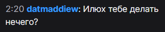 Хули жопич свой рот разевает на шизю. У самого анальная модерация в ссаном твиче была, бан за любую хуйню, чат только для сабов-чемоданов, закрытая клетка, донат никогда на экран не выводился и не озвучивался чтобы лишний раз не унижали бля.