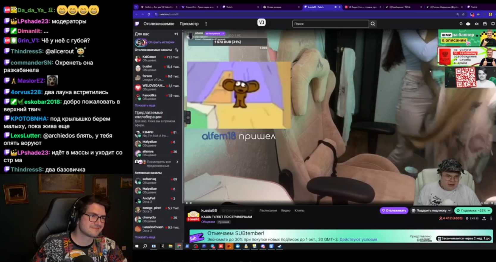 вот как судьба повернулась, левая красотка распугала всех донатеров своим чсв, 0 рублей на ауке правая позитивно воспринимает даже 25 рублёвки за стрим 16К+ с нулевого аккаунта нового