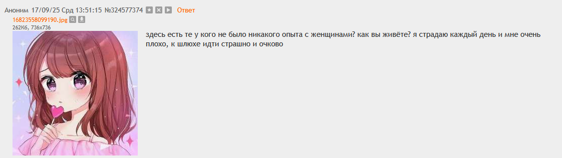 >>25223388 Честно говоря, раз у нас откровенный разговор, то больше всего я бы хотел от девушку просто минет. Сексом мог бы заниматься, но только в позе так называемой "доггистайл". Чтоб жопа у девки тряслась и чтоб не было видно вагину, потому что внешний вид вагины мне вообще не нравится. Я человек брезгливый и лизать вот эту вот болтающийся паштет не смог бы - это же омерзительно. Может поэтому меня последнее время и тянет на девушек с перчиками, потому что на пизду мерзко смотреть.
