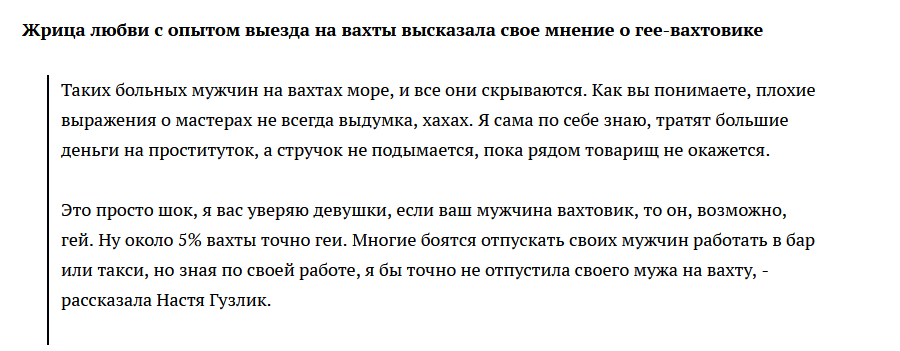 Опидорели все. Вон и Вахтыч на смазочника передёрнул. Видимо это действительно так. Бабы нет - ты пидор. Баба есть - ты натурал. Ой что делается! Нет слов, одни маты!